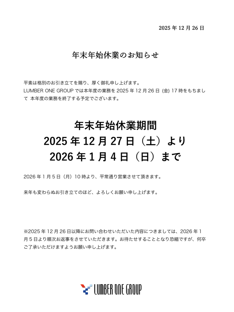 年末年始休業のお知らせ